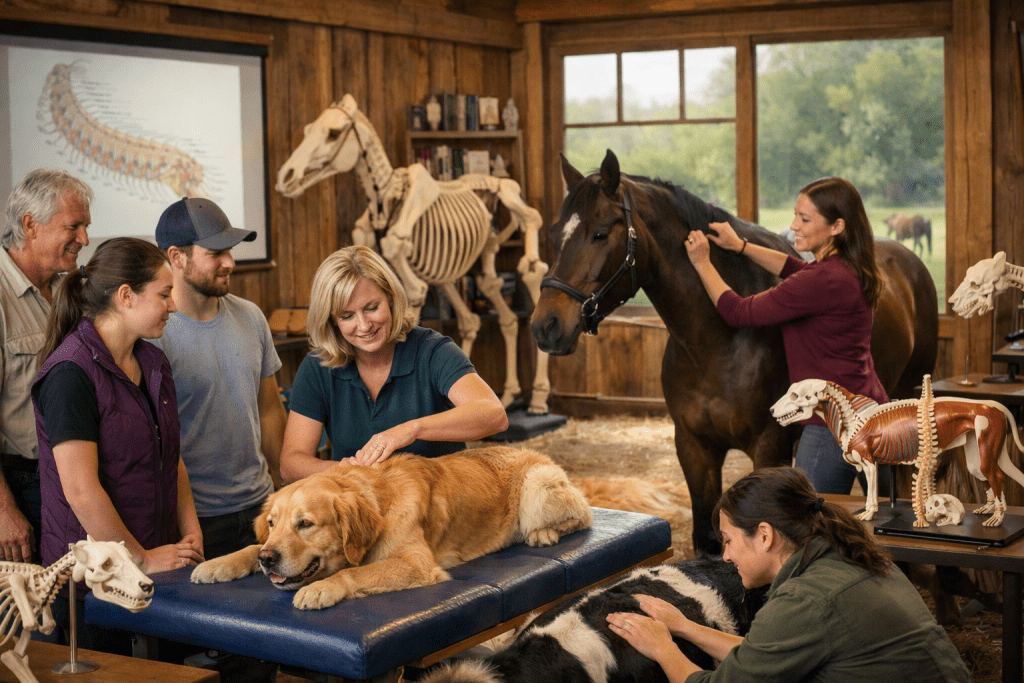 Because of the specialized anatomy and biomechanics of animals, additional education and hands-on training are required to properly evaluate and adjust animals.